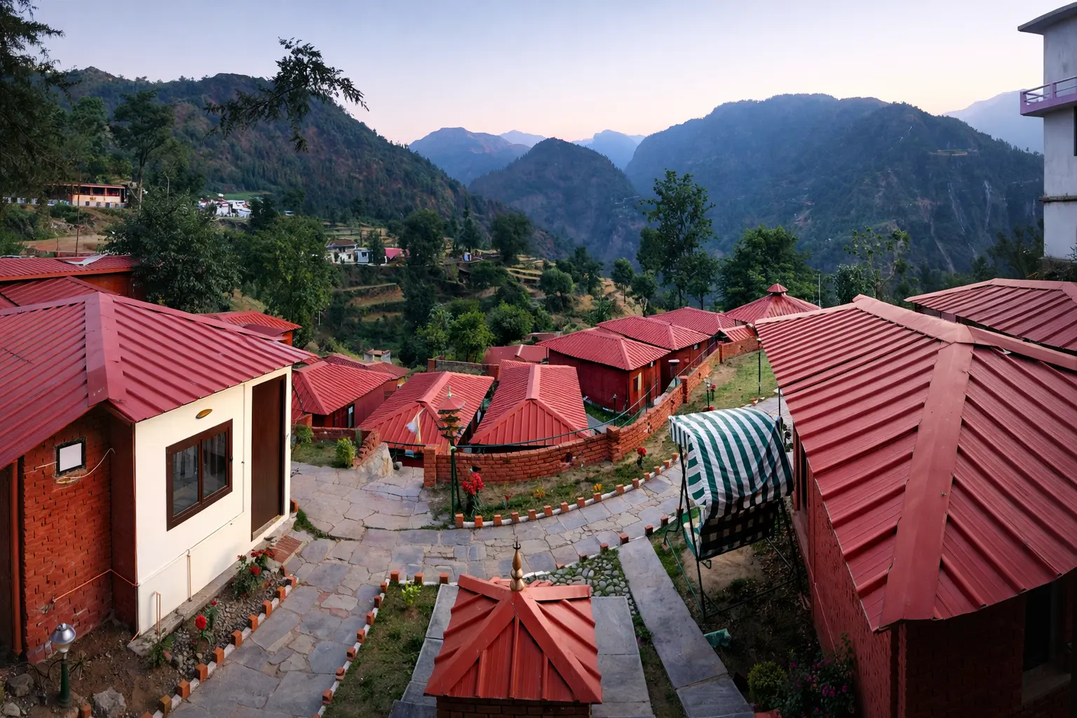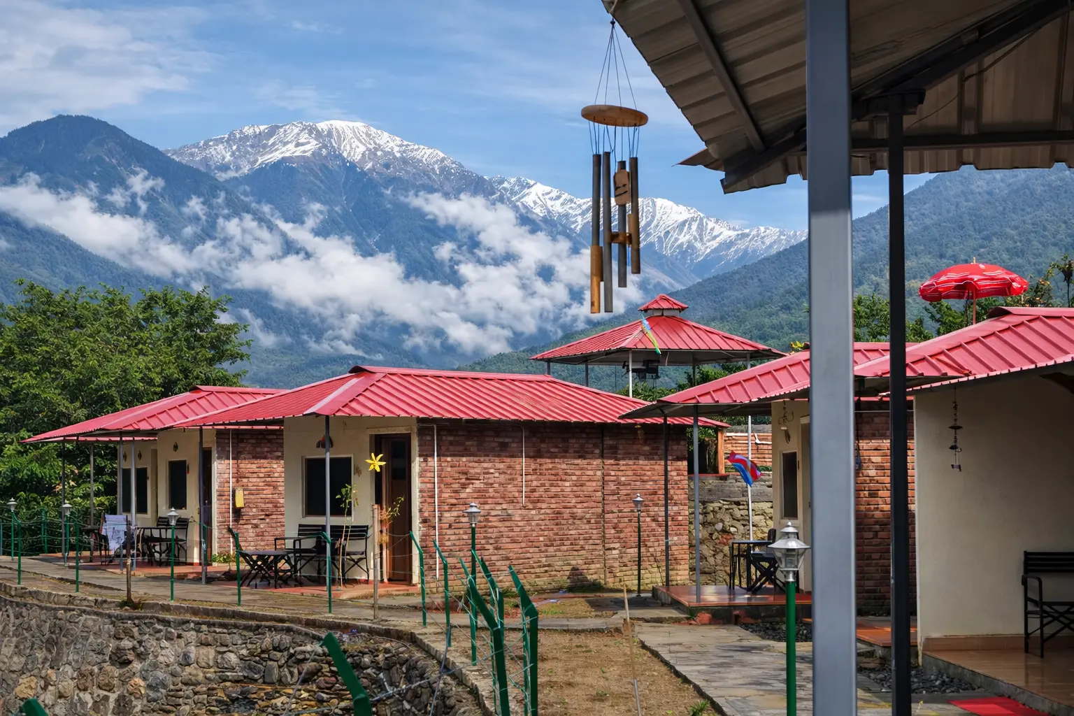 Nestled in a lush green haven dotted with vibrant flowers and fruit trees, our retreat features 18 luxury cottages designed to welcome you with warmth, elegance, and all the modern comforts you deserve during a Himalayan adventure. Choose from twin-bed or double-bed cottages, or opt for our spacious connected family rooms—perfect for families and groups traveling together.